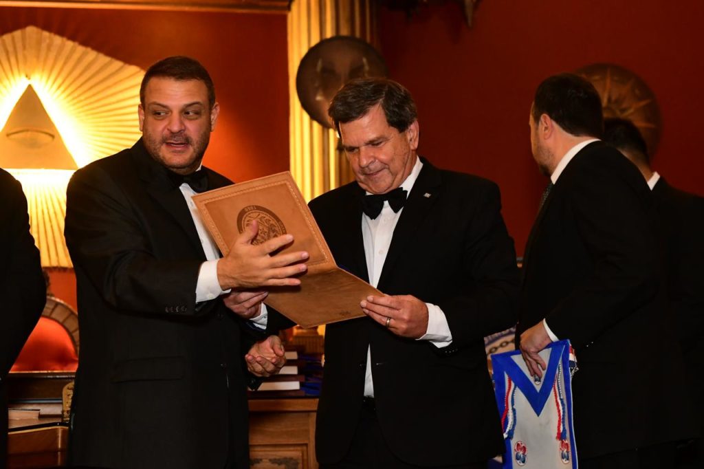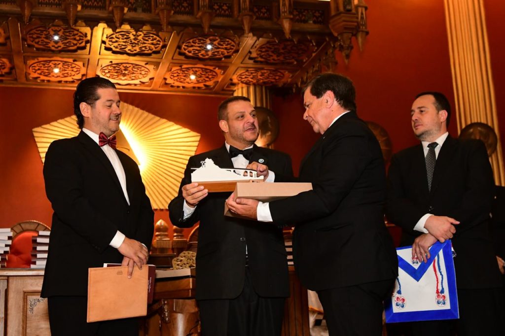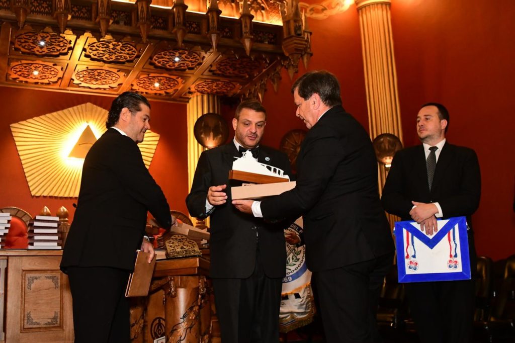 Durante a solenidade, o Grão-Mestre Valdir Massucatti entregou ao Grão-Mestre José Fernández Zacur um mimo simbolizando fraternidade, amizade e respeito entre as Potências.